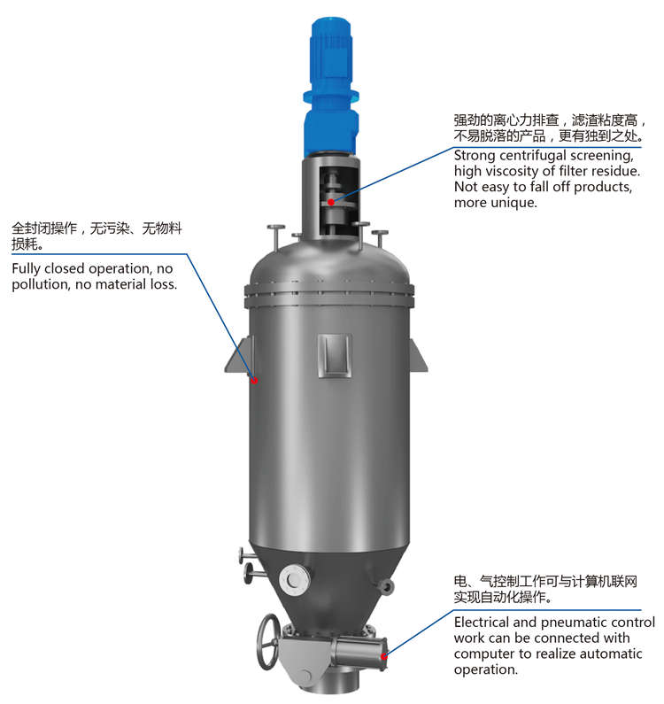 3、Its dregs can be theroughly cleande and discharged by the centrifulgal force with a good filtering offect.