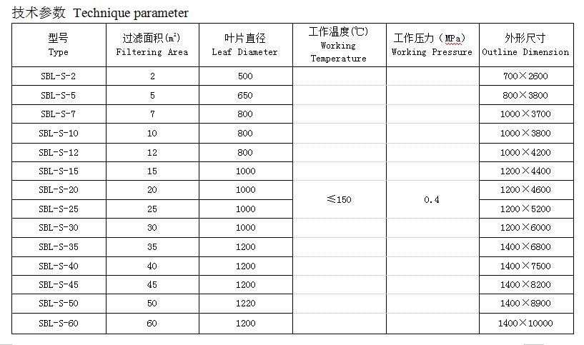 This SBL-S type series horisontal ieaf filtering machineis is a kind of highly automatic closiing precision purifying filtering equipmentit is widelyused in the business lines of petroleum, chemical engineering, food, sugar- manufacturing and pharmacy.